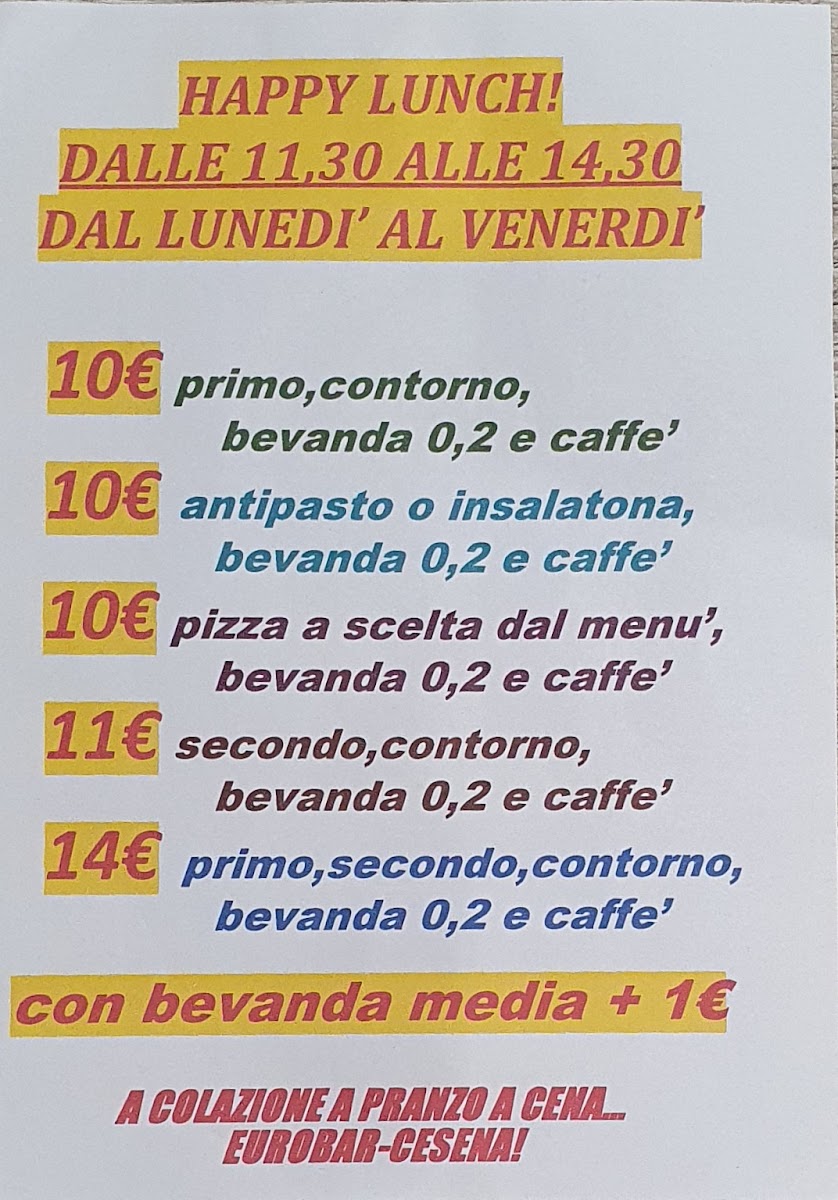 Welcome to Eurobar Ristorante, a culinary gem located in the heart of Cesena, Italy. Nestled on Via Anna Kuliscioff, this vibrant eatery offers a delightful fusion of traditional Italian flavors and modern dining experiences. With a commitment to quality, each dish is crafted using fresh, locally sourced ingredients that celebrate the rich culinary heritage of Italy.